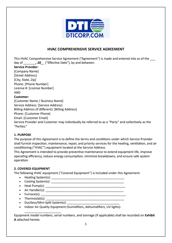 – HVAC Comprehensive Service Agreement (Full Maintenance): Covers all maintenance labor and, frequently, all parts, offering maximum protection against repair costs.